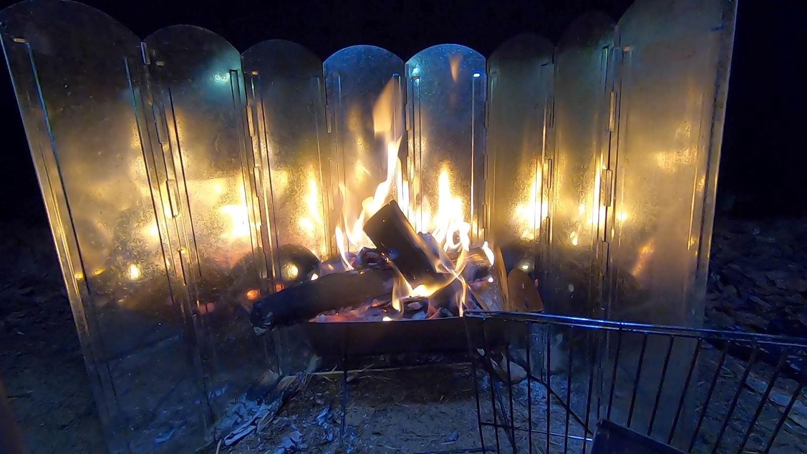 反射板で囲むと焚き火はものすごく暖かい