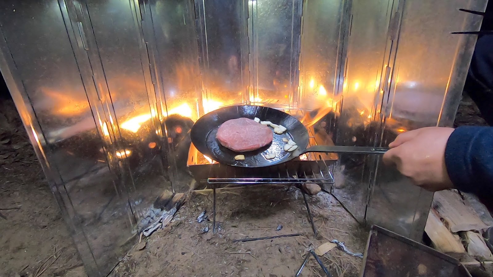 焚き火でステーキ!フライパンはペトロマックス28センチ