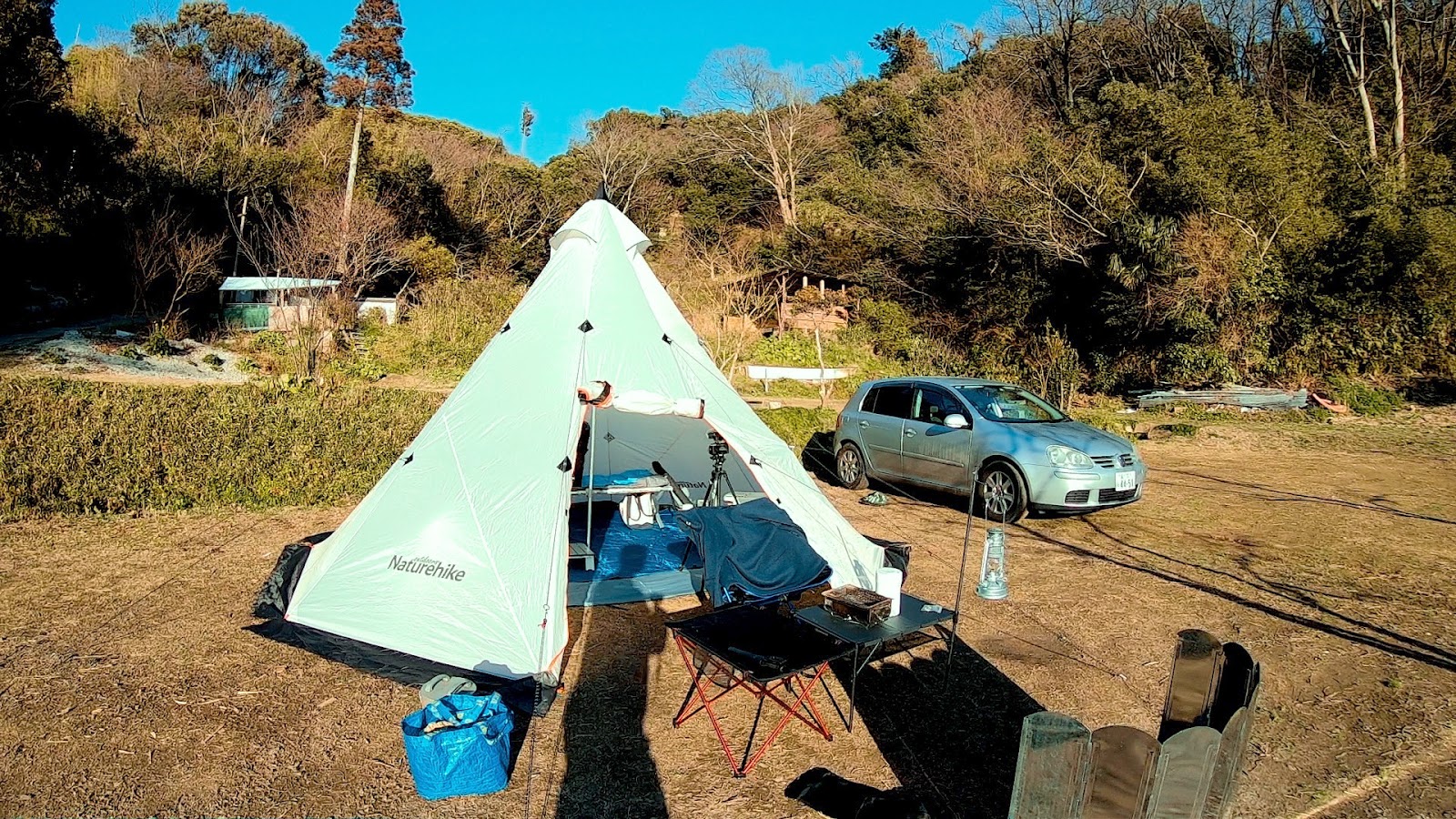 中華製のテントはこの前にもジオドームタイプの物を使用していました。そのテントは中がとても広くて家族がゆったり出来、非常に気に入っていたのですがポールがファイバー製で速攻で亀裂が入り使えなくなってしまいました。また雨の時も床がうっすらと濡れて耐水性も低く、コンセプトが気に入っていただけにとても残念な物でした。